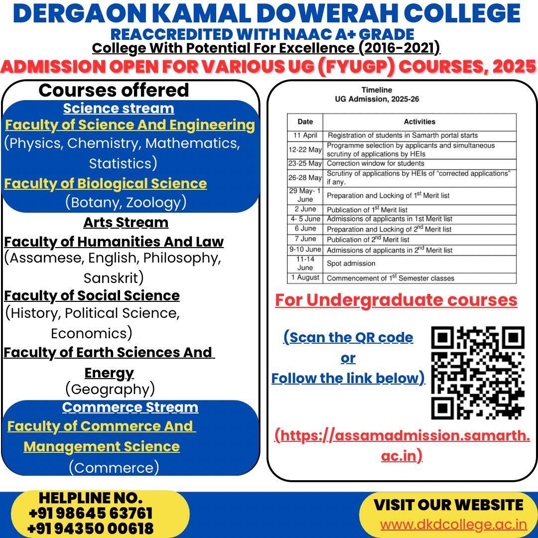 Download Notice Relating to Fee Waiver SchemeJune 15, 2025Download Round 1 Merit List for Admission in B.AJune 15, 2025 June 15, 2025 Share Related postsJanuary 9, 2026Nijut Babu NotificationRead moreJanuary 5, 2026Dr. Banikanta Kakati Award – 2025 under Pragyan Bharati Scooty Scheme (Notice)Read moreDecember 6, 2025Document verification and distribution of Appreciation Certificate of Dr. Banikanta Kakati Award – 2025 under Pragyan Bharati Scooty Scheme in DKD CollegeRead more