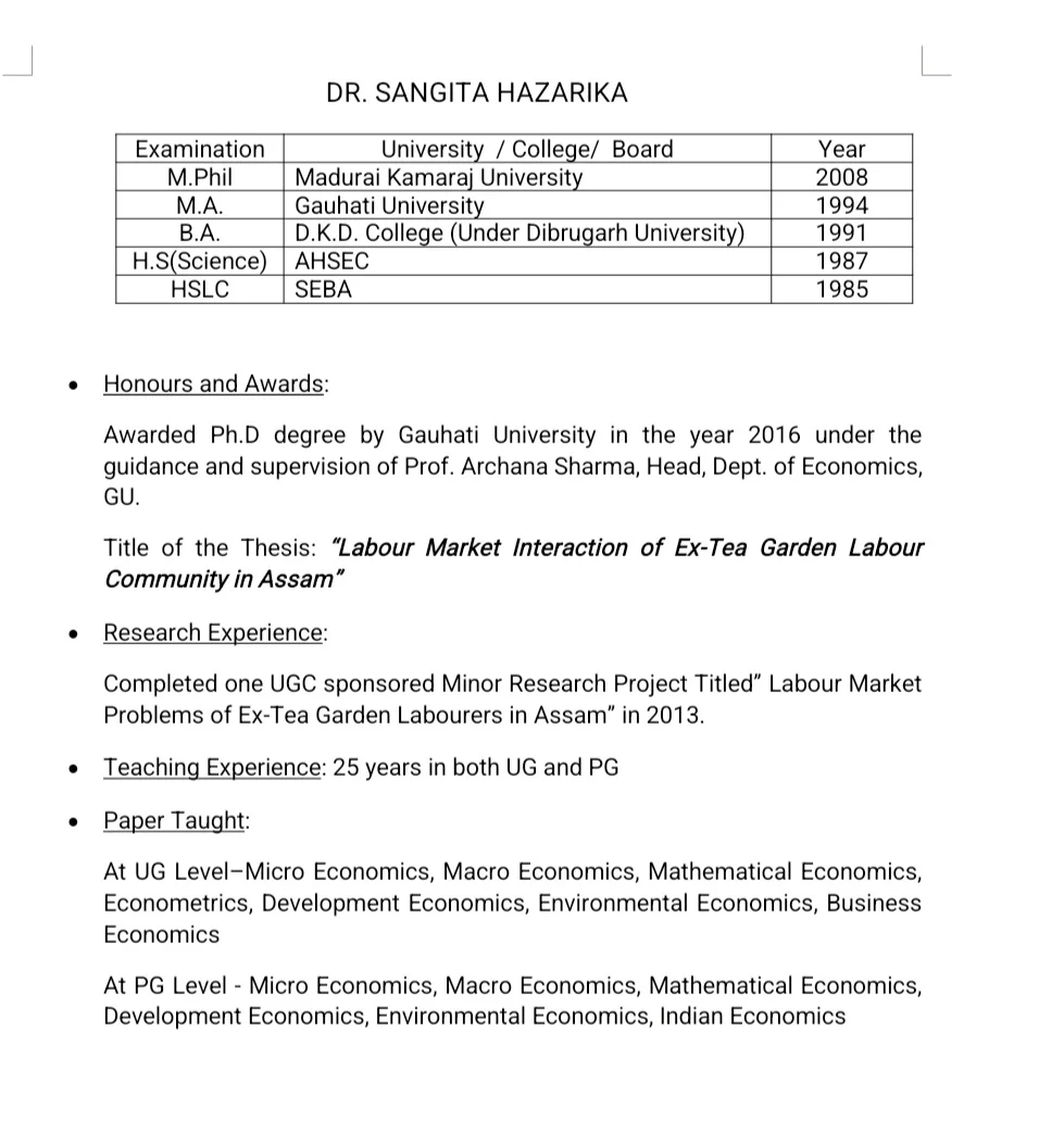 Awards & Achievements: Awarded Ph.D degree by Gauhati University